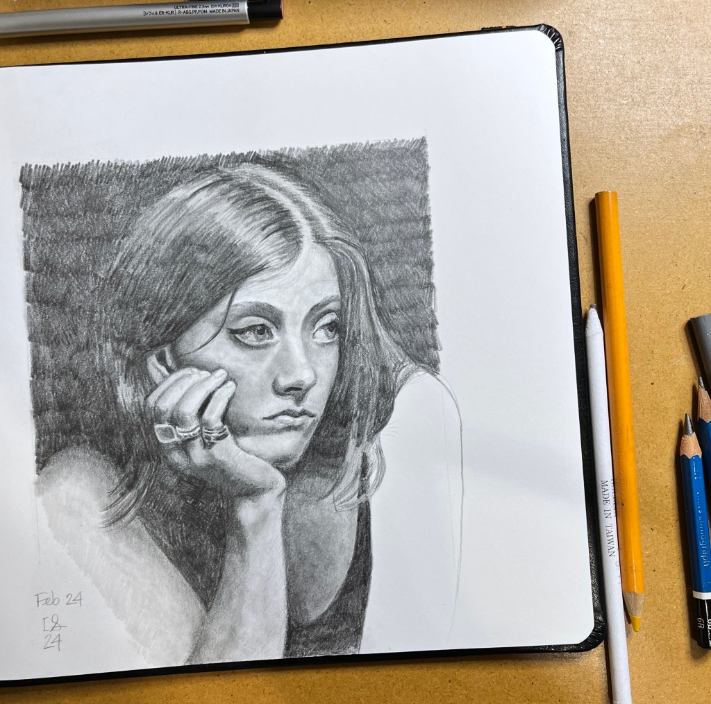 Image caption: A pencil drawing I did in February 2024 while thinking of my dear friend in her last days. She passed on February 26, 2024. At the time, I also knew my father didn’t have long to live, and this piece now holds meaning for both of them. May they both rest in peace. 🙏