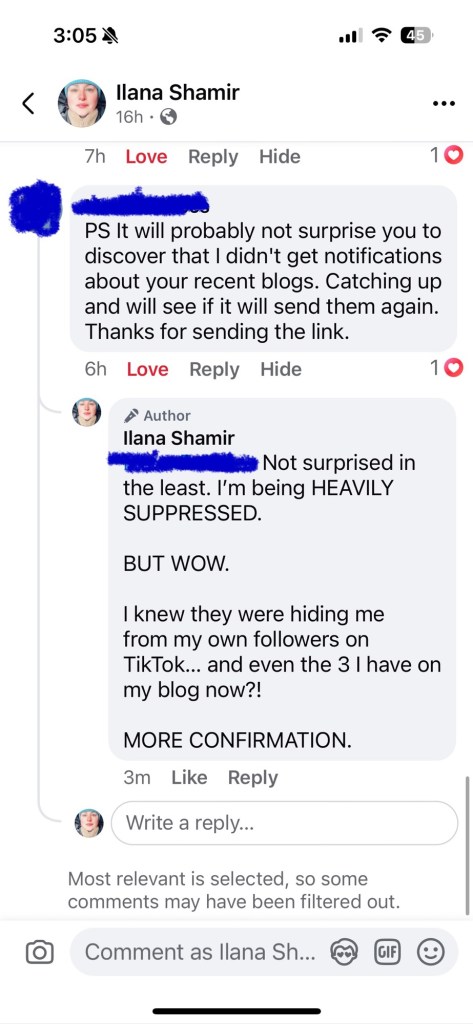 I knew they were hiding me from my own followers on TikTok… and even the 3 I have on my blog now?!