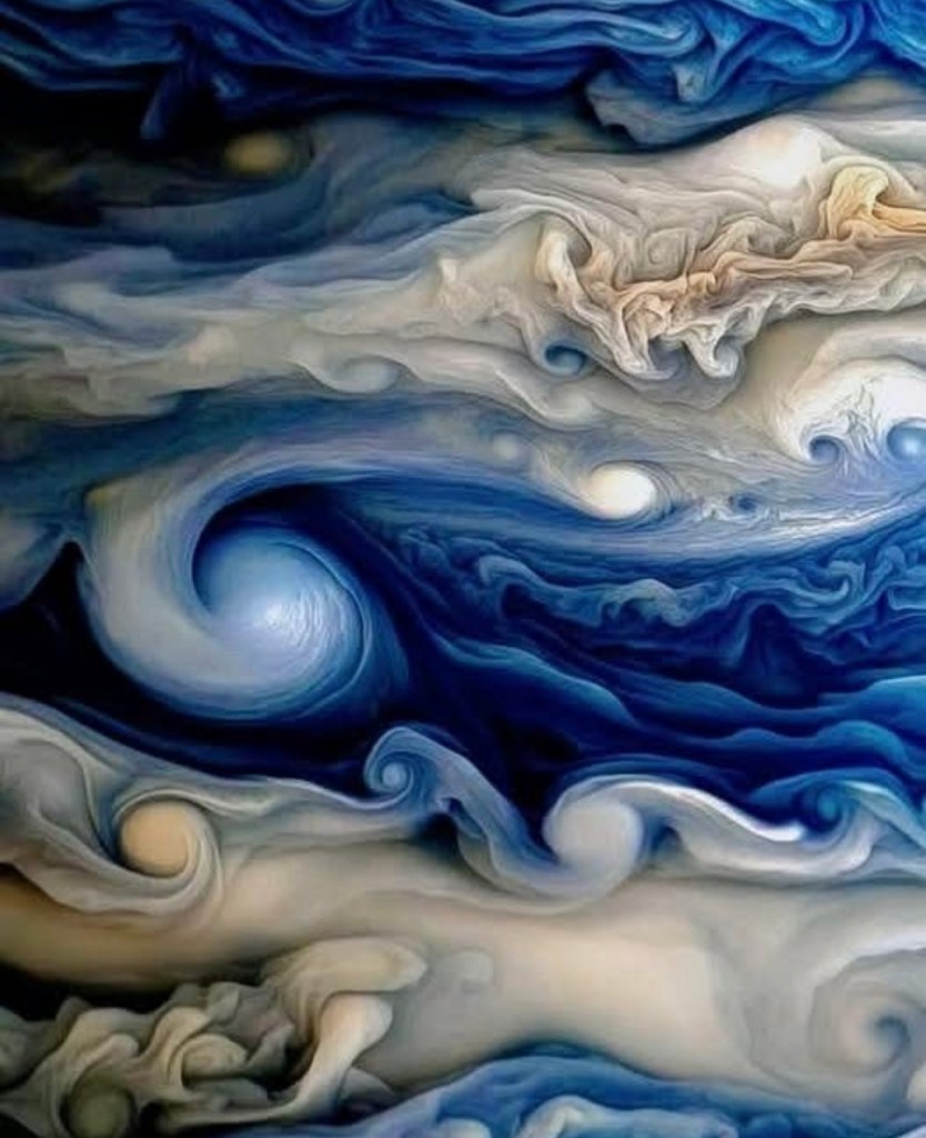 NASA’s closest look yet at Jupiter feels less like astronomy and more like art — swirling storms rendered in strokes of cream, indigo, and cobalt. A reminder that the universe paints on scales we can barely comprehend. If this reminds you of Van Gogh’s Starry Night, you are not alone.