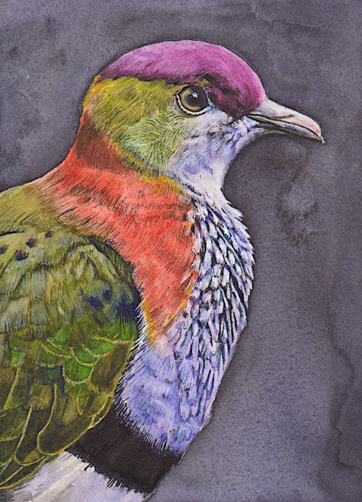 10 years later 📆⏳My first attempt at drawing a bird in watercolours on this day, November 5th 2015 (above) was followed by the “Superb Fruit Dove” (below).